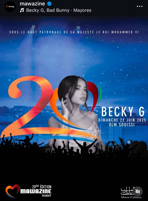 تم تأكيد مشاركة المغنية بيكي جي في مهرجان موازين بالمغرب لعام 2025 في شهر يونيو القادم ، كما انتشرت تكهنات واسعة بين مستخدمي الإنترنت ، حول إمكانية انضمام جيهوب عضو فرقة BTS إلى قائمة الفنانين المشاركين في مهرجان موازين بالمغرب.