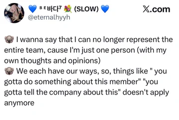 2. هذه هي المرة الأولى التي أرى فيها قائداً لفرقة كيبوب يُظهر علناً أنه سئم من زميله في الفرقة وفضائحه ويقول إنه لا يريد أن يرتبط بفوضاه ㅋㅋ