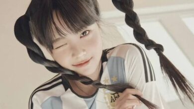ايون تشاي من فرقة لي سيرافيم ترتدي قميص منتخب الأرجنتين